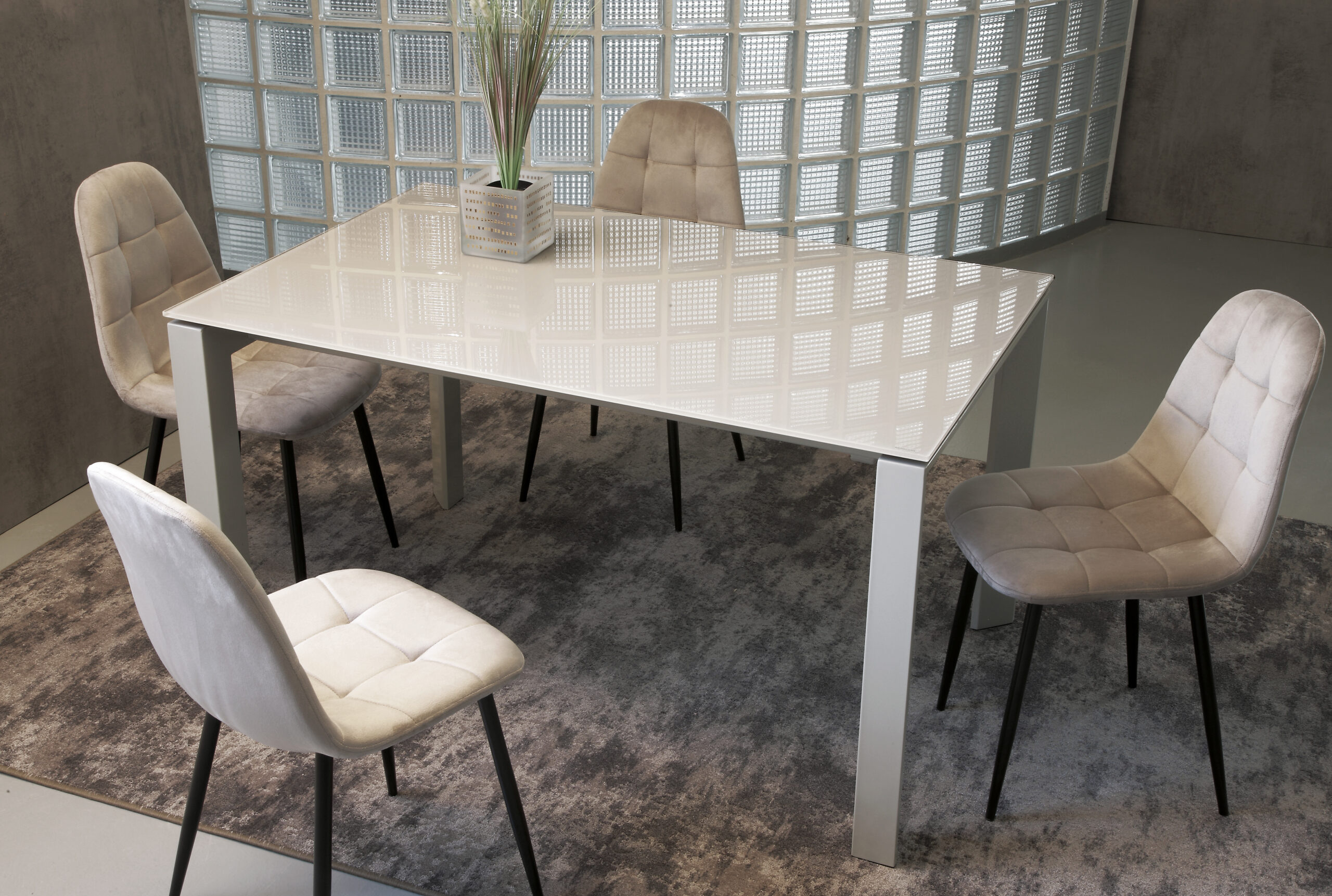 Con la sua estetica contemporanea e la sua praticità, il tavolo allungabile in cristallo colorato 'Mumbai' si adatta perfettamente a ogni stile di arredamento, offrendo flessibilità e versatilità in ogni occasione.