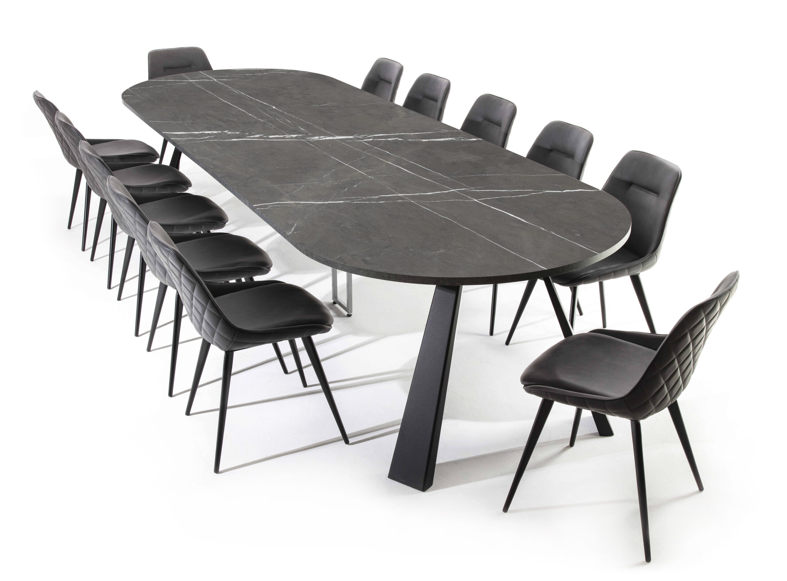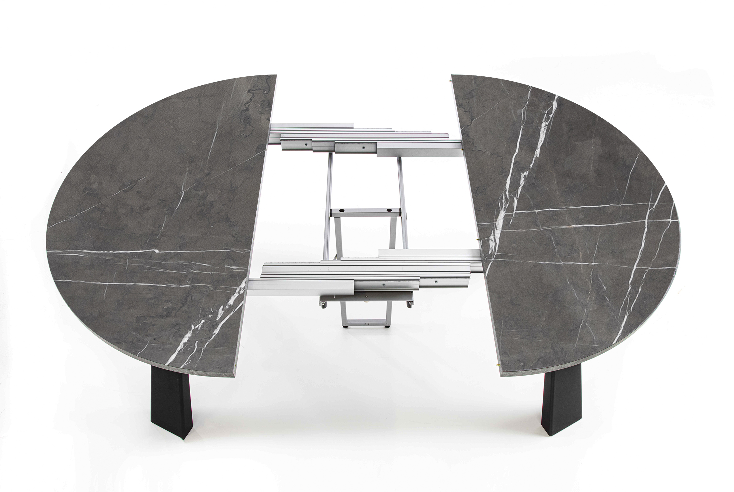 La forma circolare dona al tavolo un’estetica armoniosa e senza tempo, mentre il sistema di allunghe telescopiche permette di adattarlo facilmente a ogni esigenza di spazio.